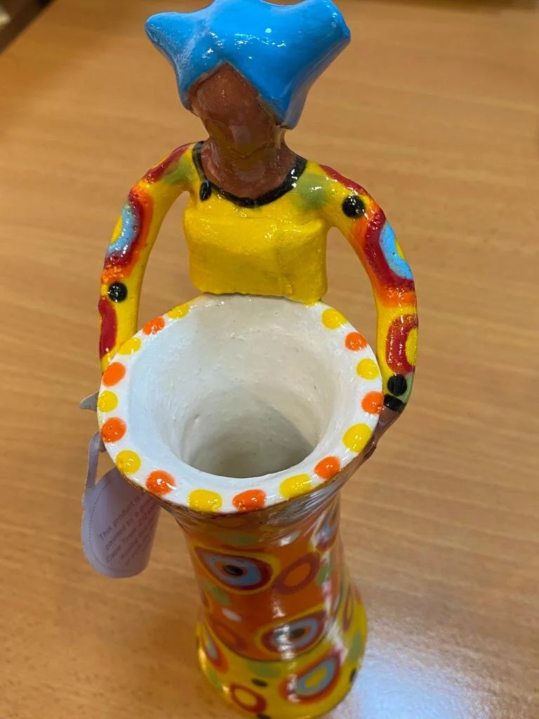 One lady sweetie dish (yellow body, orange headpiece) by Zizamele