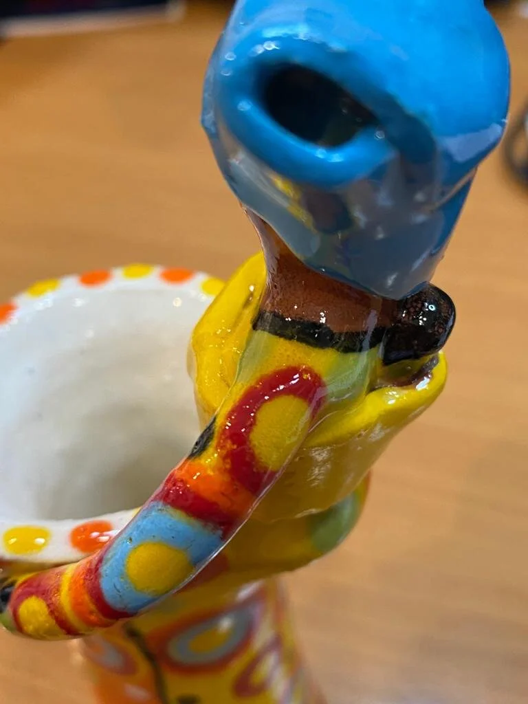 One lady sweetie dish (orange/yellow body, green headpiece) by Zizamele